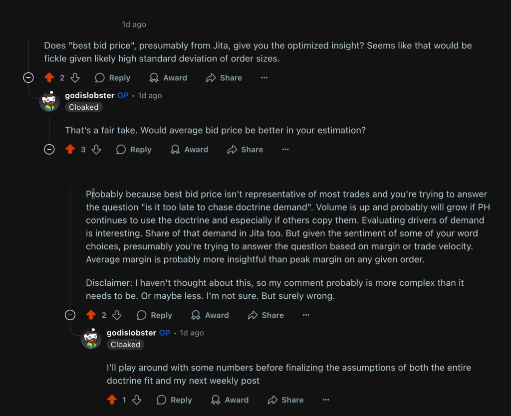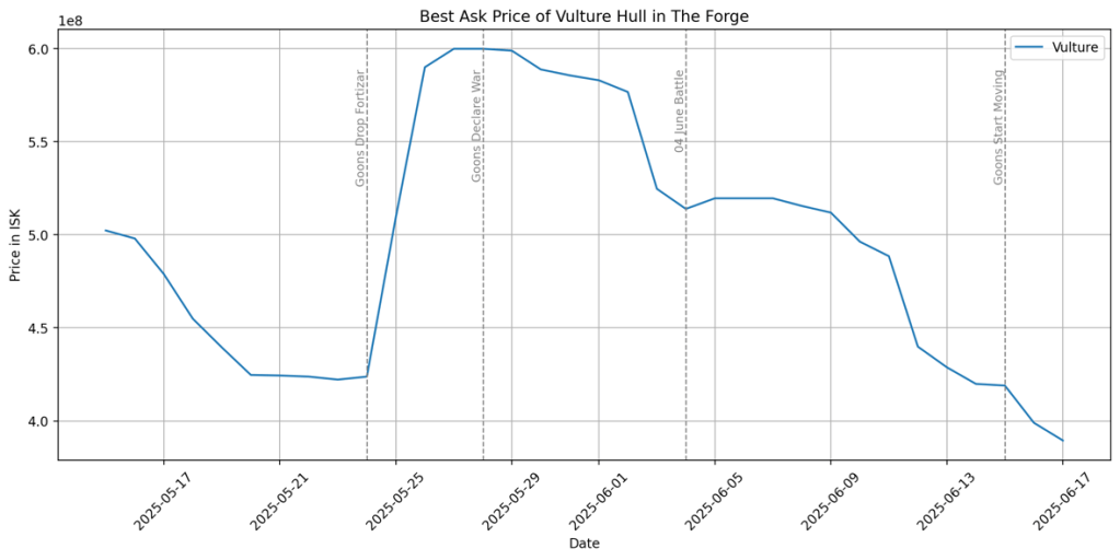 Overall, the markets are shifting due to the recent nerf by the patch on 09-Sept 25 and its effects on fleet composition. The markets should be able absorb this shift and I don’t foresee a crash unless another hull becomes dominant in the fleet doctrine. While change can be difficult in ship doctrine, for both the long term health of the game and the economy it is necessary.